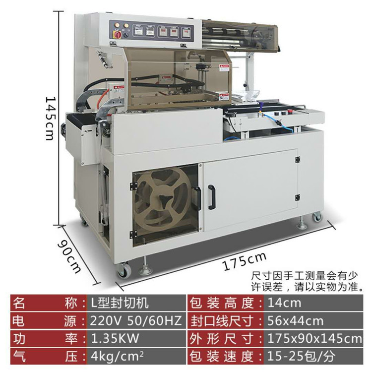 3. 比热收缩包装机节电百分之八十以上.贰年节约的电费就可购买一台半自动透明膜包装机. 自动封切热收缩包装机 L型塑封机